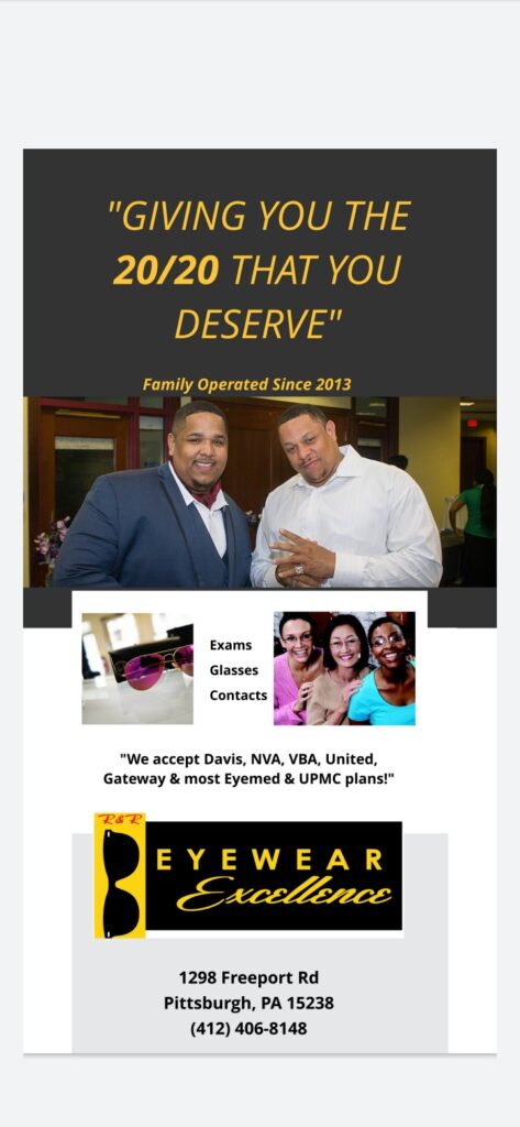 “My name is Richard Hatcher and I am the owner of R&R Eyewear Excellence located at 1298 Freeport Rd Pittsburgh, PA 15238. I have been in business for almost 8 years now. We are a small optometry practice that focus on spending 1 on 1 time with each patient. We are not about the total number of bodies that walk through the door; we are about the quality & accuracy of work we can provide to them. We are appointment only due to COVID-19, but that helps enhance the 1 on 1 concept we want to give. We do eye examinations, eyeglasses & contact lenses. OUr number is 412-406-8148.”