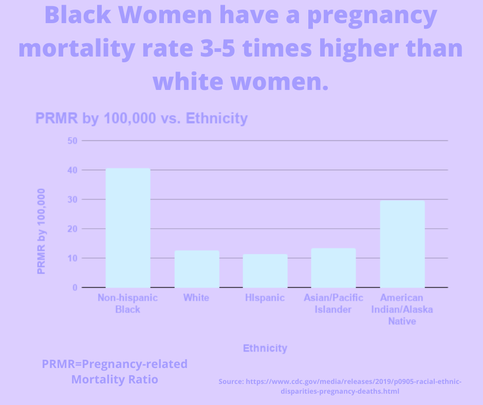 An example of a chart the youth were able to make using online tools to highlight the higher risks Black women face during pregnancy.