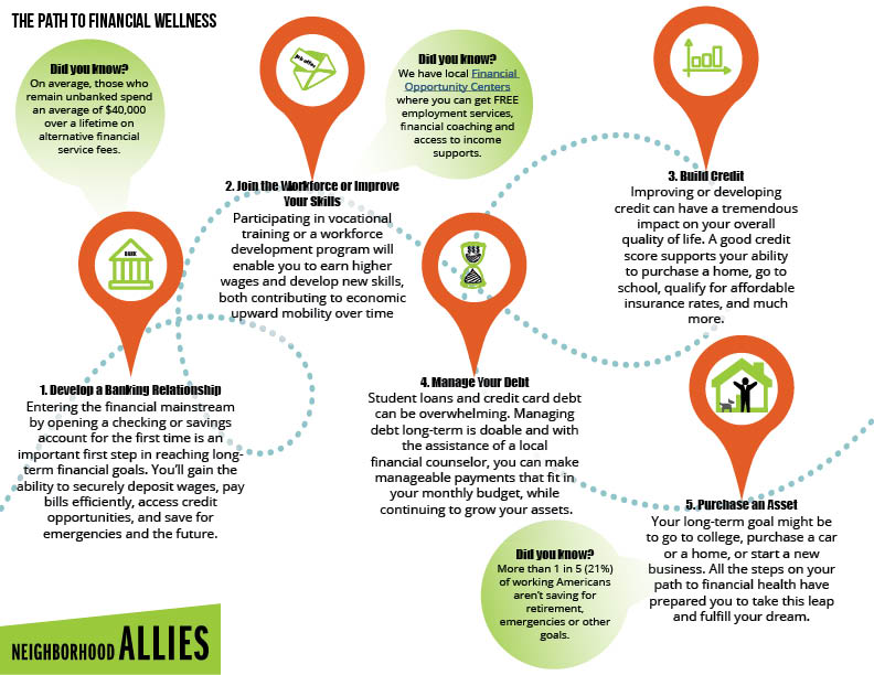 • Our Asset Building Network to coordinate local financial capability services. Launched in 2016, the network is a collaborative community for learning and advocacy that strengthens program and policy efforts to increase economic opportunity. We host a quarterly meeting of representatives of service providers; financial institutions; local, state and federal government; and regional entities such as United Way and Partner4Work.