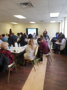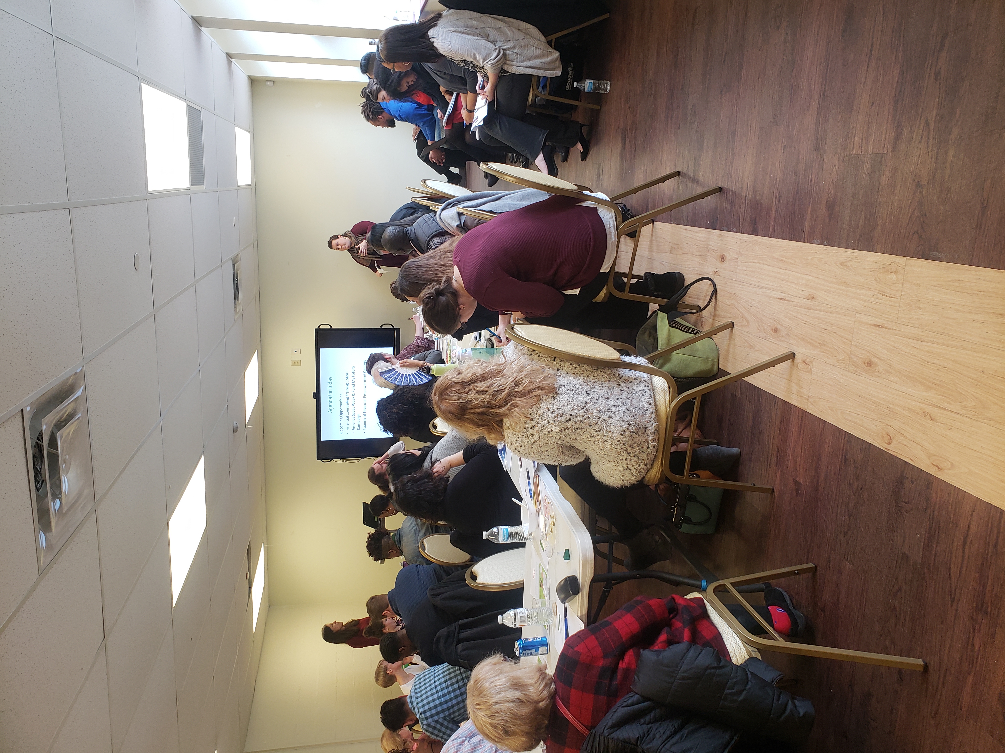 Attendees listen as Vanessa Buffry, Neighborhood Allies Consultant and Graduate Student at Carnegie Mellon University’s Heinz College, shares about a Financial Counseling Training Opportunity.